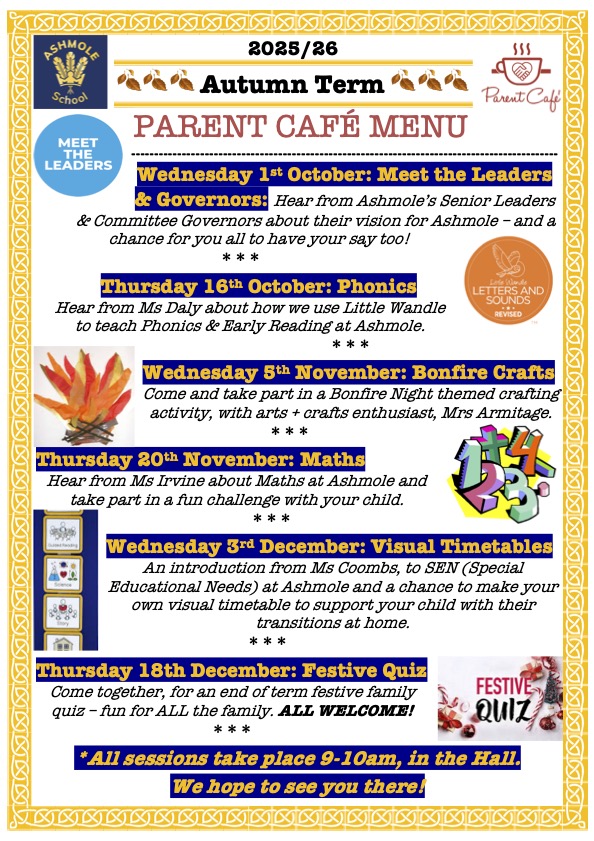 1) Meet the Leaders Parent Cafe: Wednesday 1st October 2025