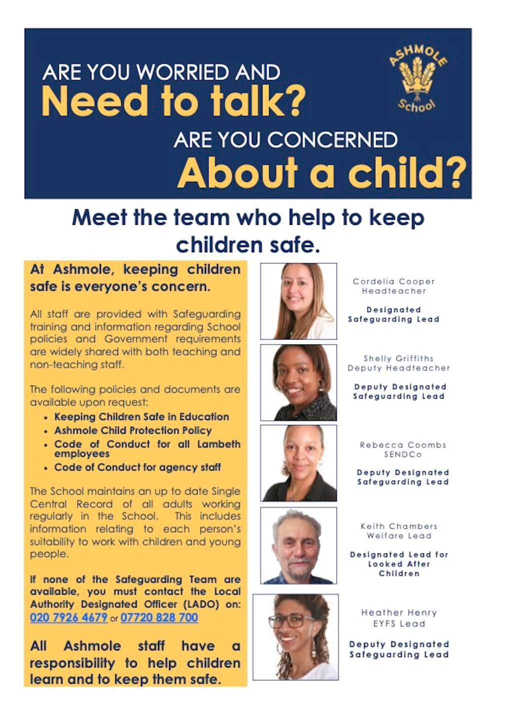 Safeguarding is of paramount importance at Ashmole and forms one of our core duties as a school. Ensuring that your children are safe and happy, is essential, if they are to become effective, life long learners.